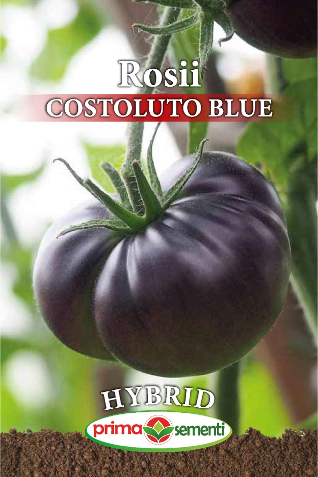 Costolutto Blue F1 este un hibrid de roșii spectaculos, destinat celor care doresc nu doar o cultură productivă, ci și un aspect vizual inedit. Fructele acestui soi se remarcă prin culoarea deosebită – roșu intens cu umeri violet-albăstrui, pigmentație bogată în antociani, compuși cu proprietăți antioxidante valoroase. Forma costată (crestată) amintește de tomatele tradiționale italiene, fiind potrivită atât pentru consum proaspăt, cât și pentru preparate gourmet sau salate spectaculoase